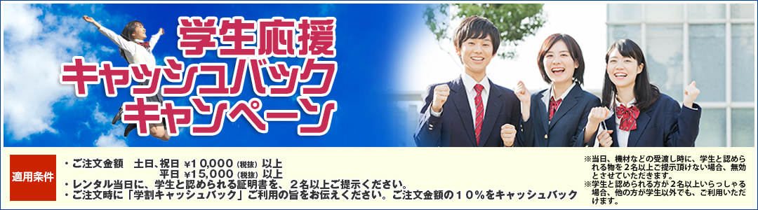- 学生応援キャッシュバックキャンペーン終了につきまして