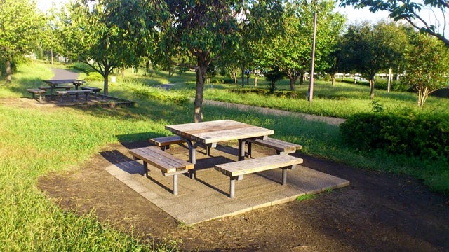 バーベキュー広場は、1区間に1つのテーブルが置かれ全部で10テーブルが設置されています。
